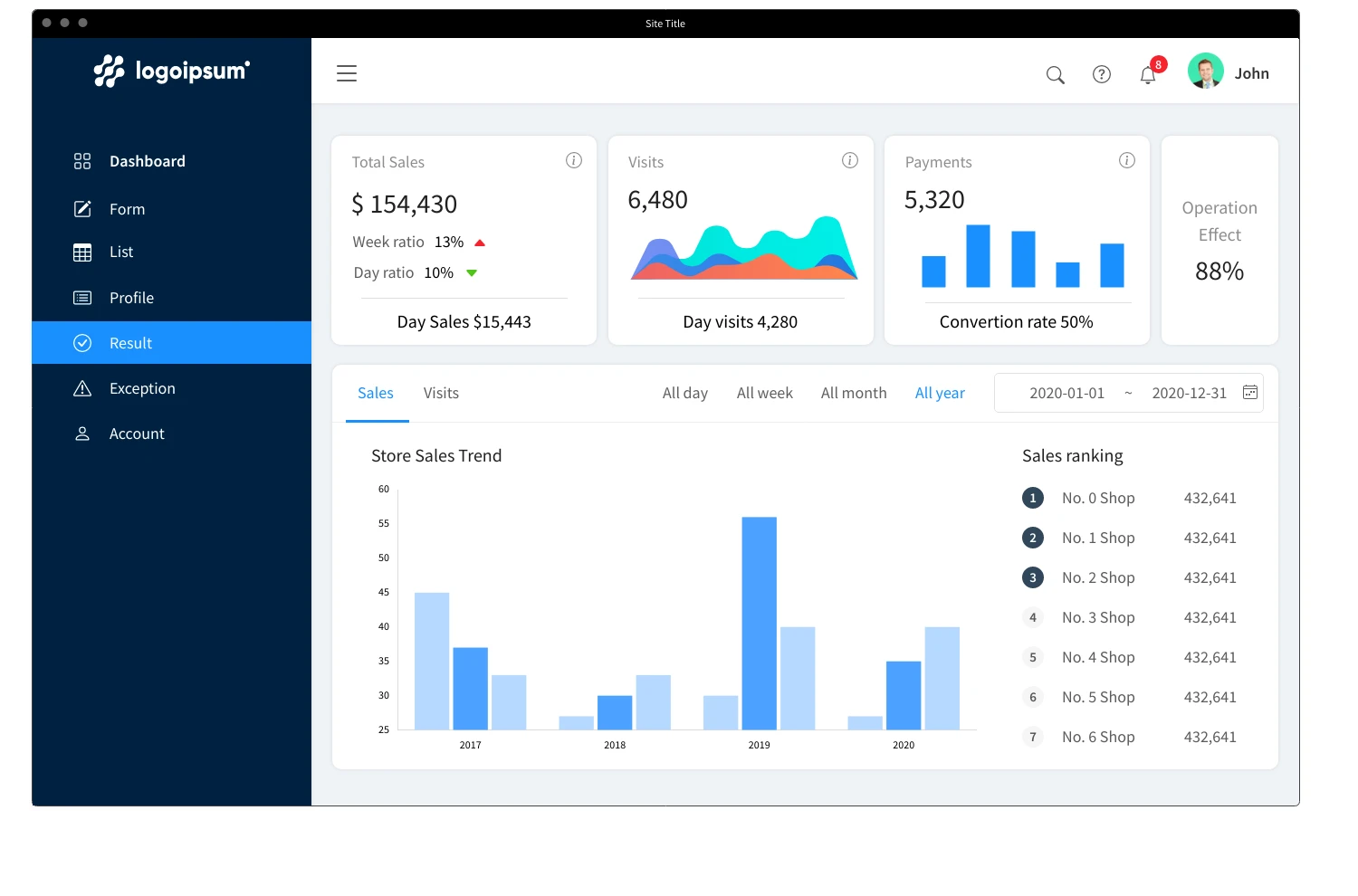 v-app-barat the top of your page. Use thev-app-bar-titleto clearly state the name of your dashboard. - Differentiate the sections of your dashboard (e.g., the sparkline area vs. the table area) by applying different colors. Follow colors documentation here: https://v3.vuetifyjs.com/en/styles/colors/#classes